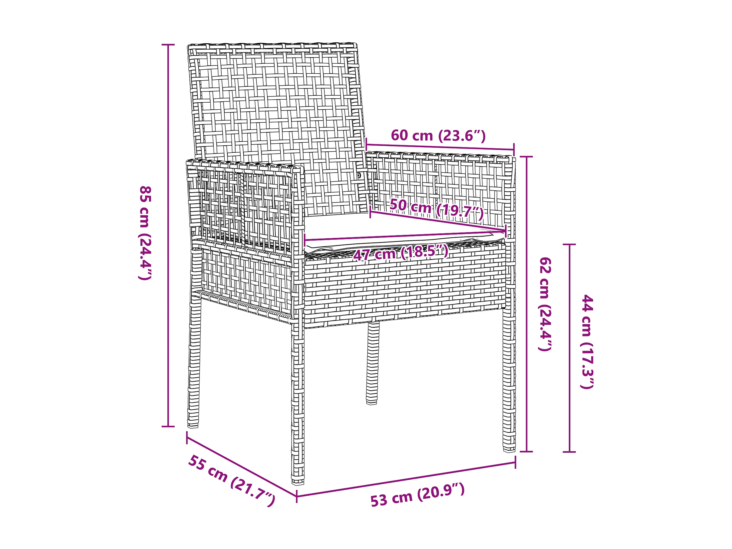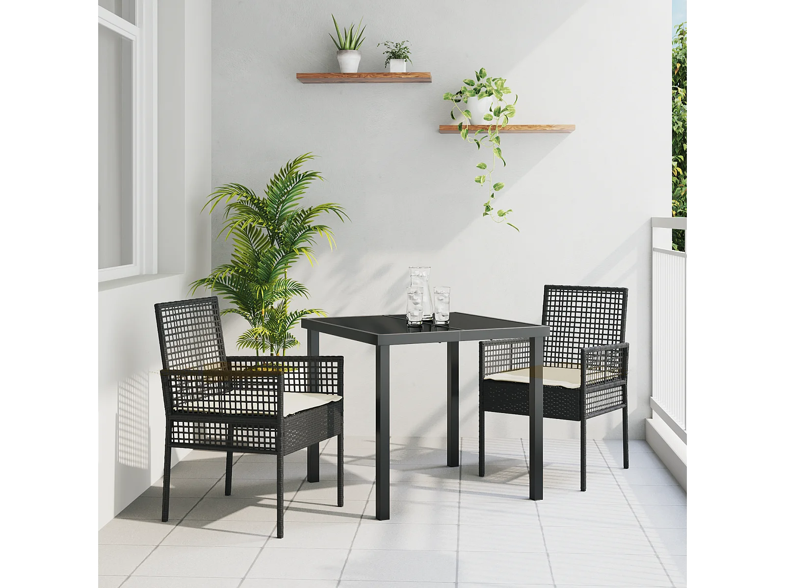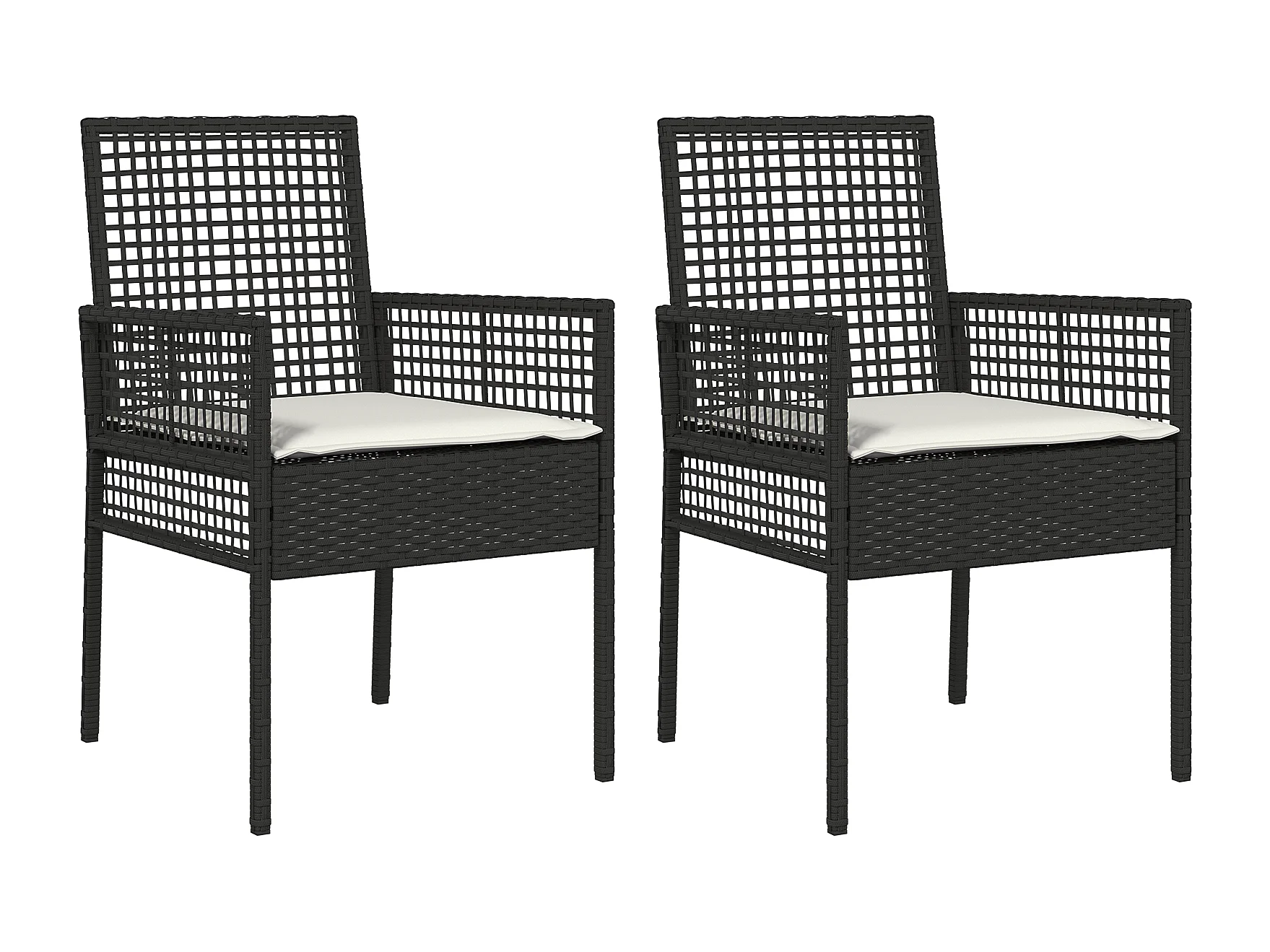 Chaises de jardin 2 pcs avec coussins Noir Poly Rattan