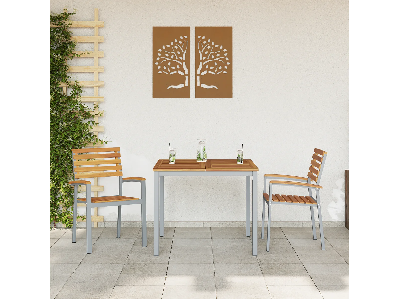 Chaises de jardin 2 pcs Grises en bois d'acacia et en acier