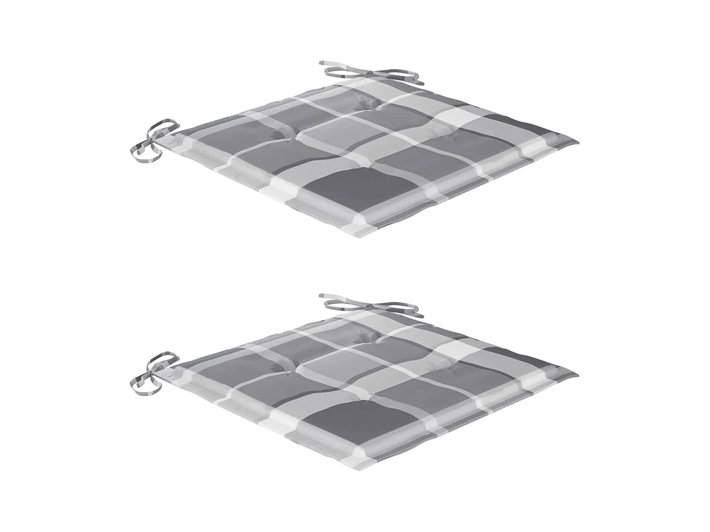 Chaises de jardin 2 pièces avec coussins à carreaux gris Teck