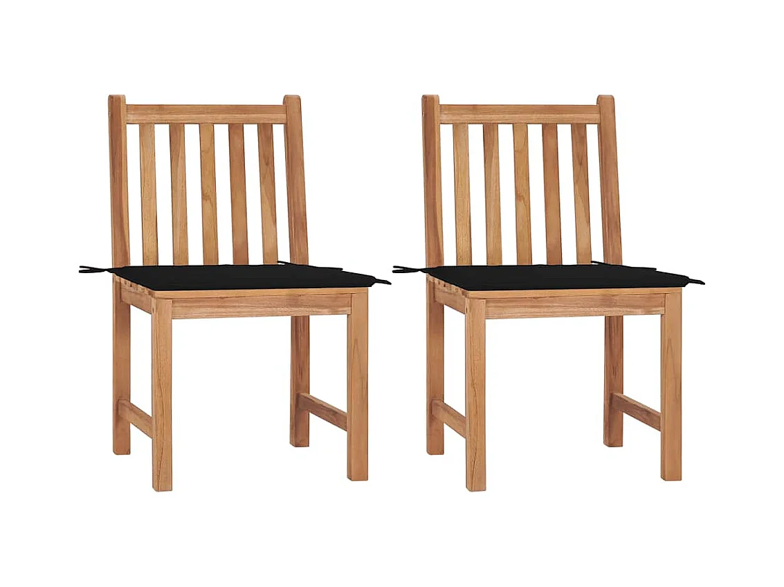 Chaises de jardin avec coussins noir 2 pièces Bois de teck massif
