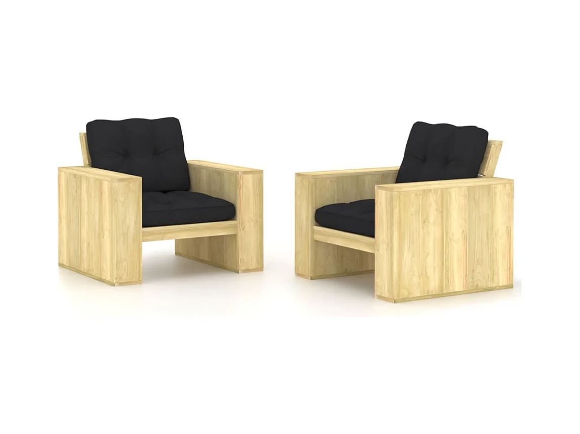 Chaises de jardin 2 pièces avec coussins noir Pin imprégné