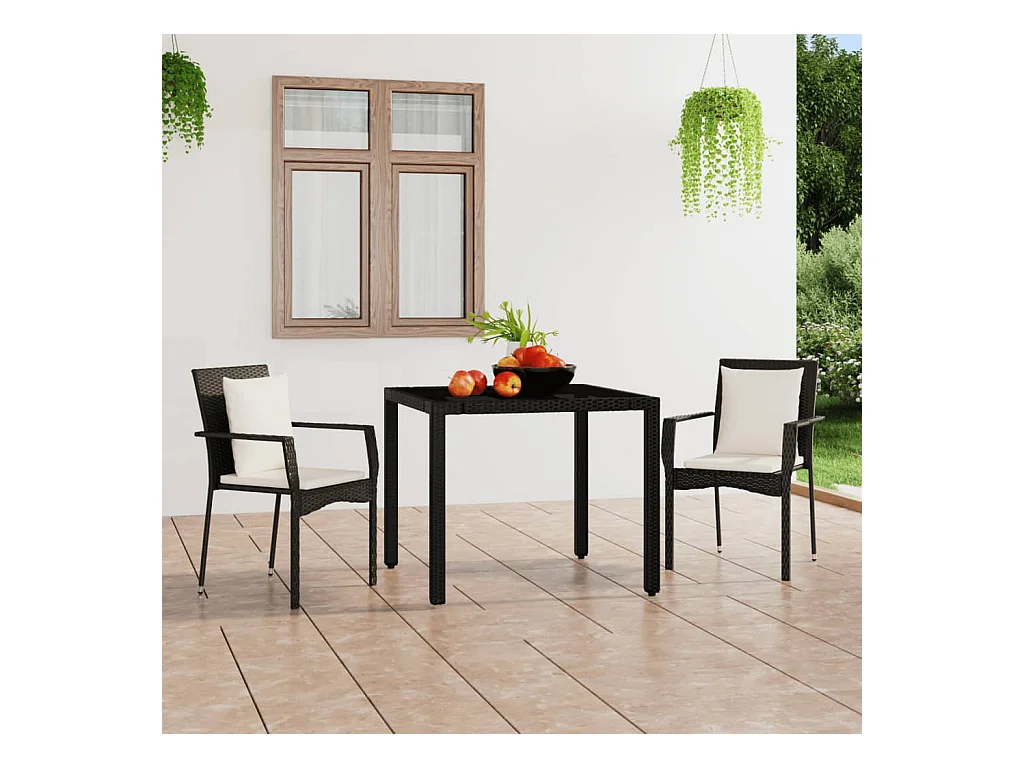 Chaises de jardin lot de 2 avec coussins noir résine tressée