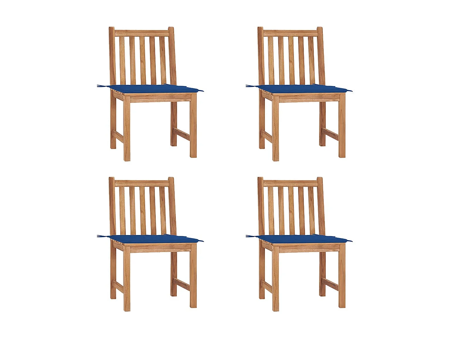 Chaises de jardin lot de 4 avec coussins Bois de teck massif