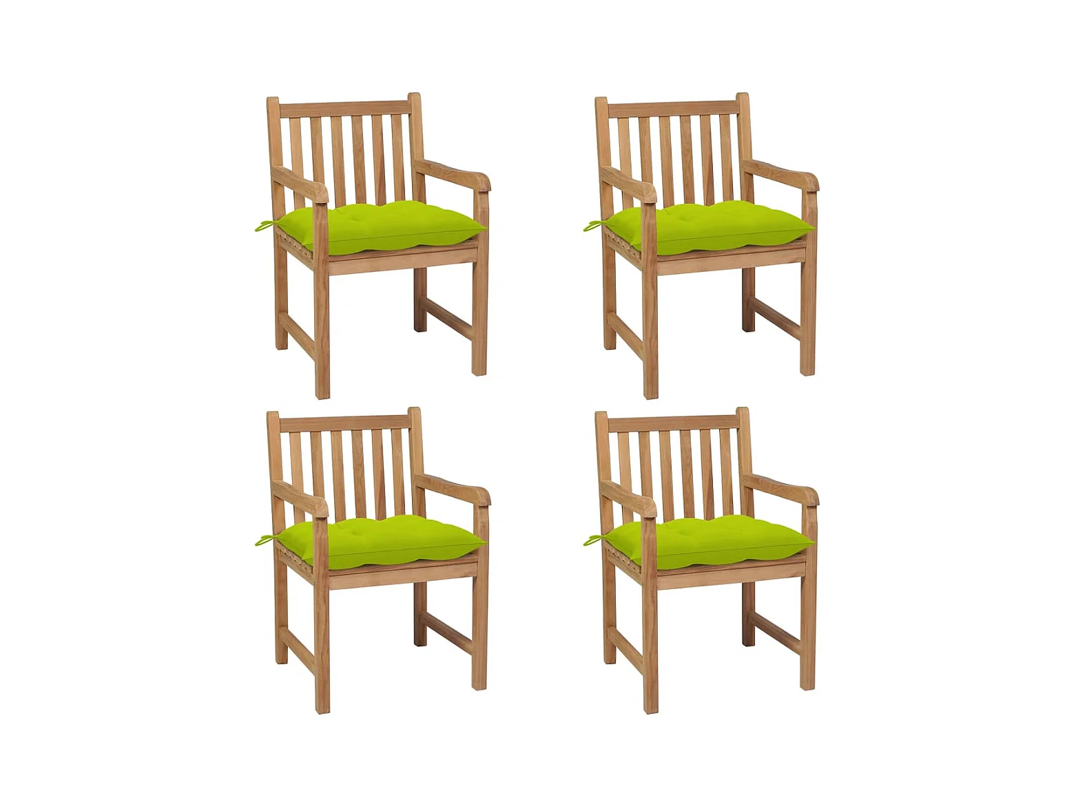 Chaises de jardin 4 pcs avec coussins vert vif Teck solide