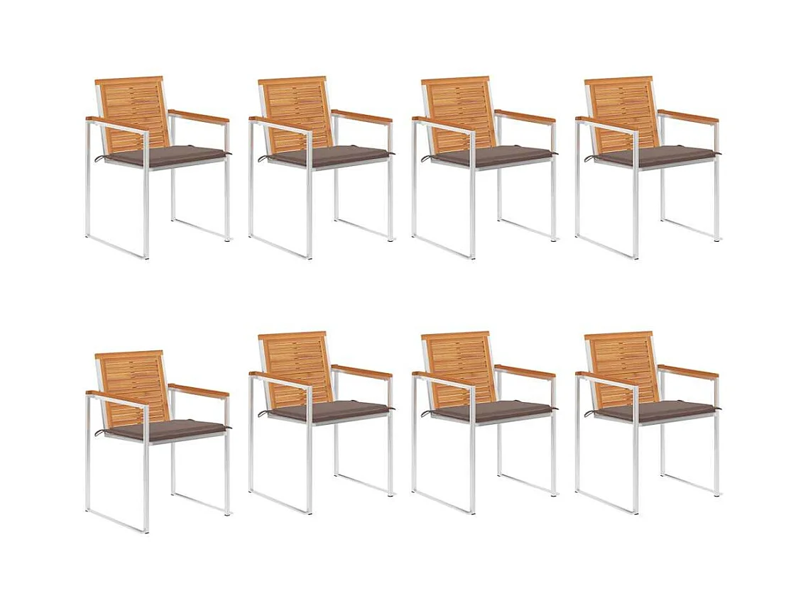 Chaises de jardin lot de 8 avec coussins Bois d'acacia solide