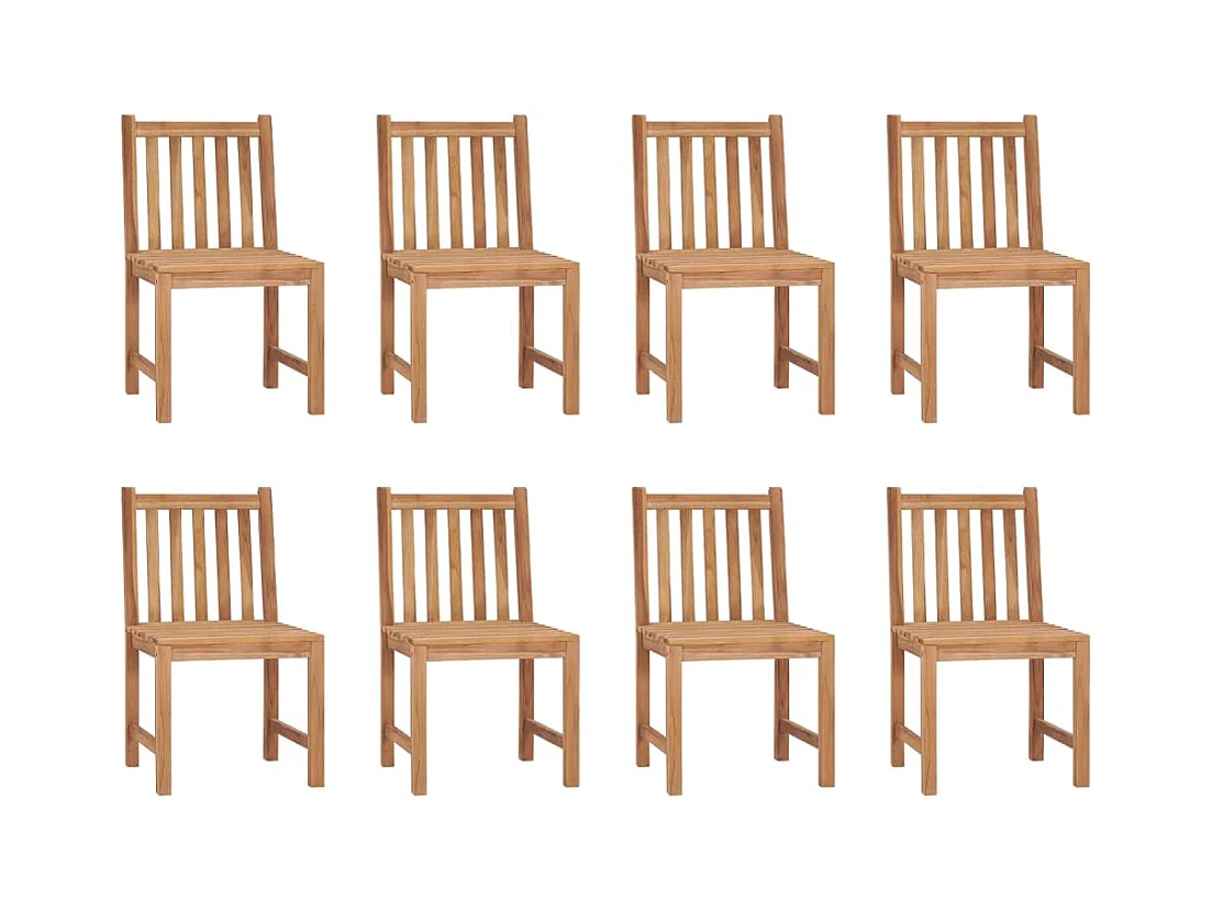 Chaises de jardin empilables avec coussins lot de 8 Teck solide