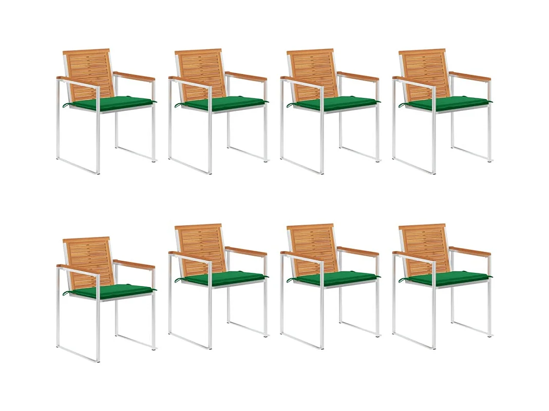 Chaises de jardin avec coussins vert 8 pièces Bois de teck massif