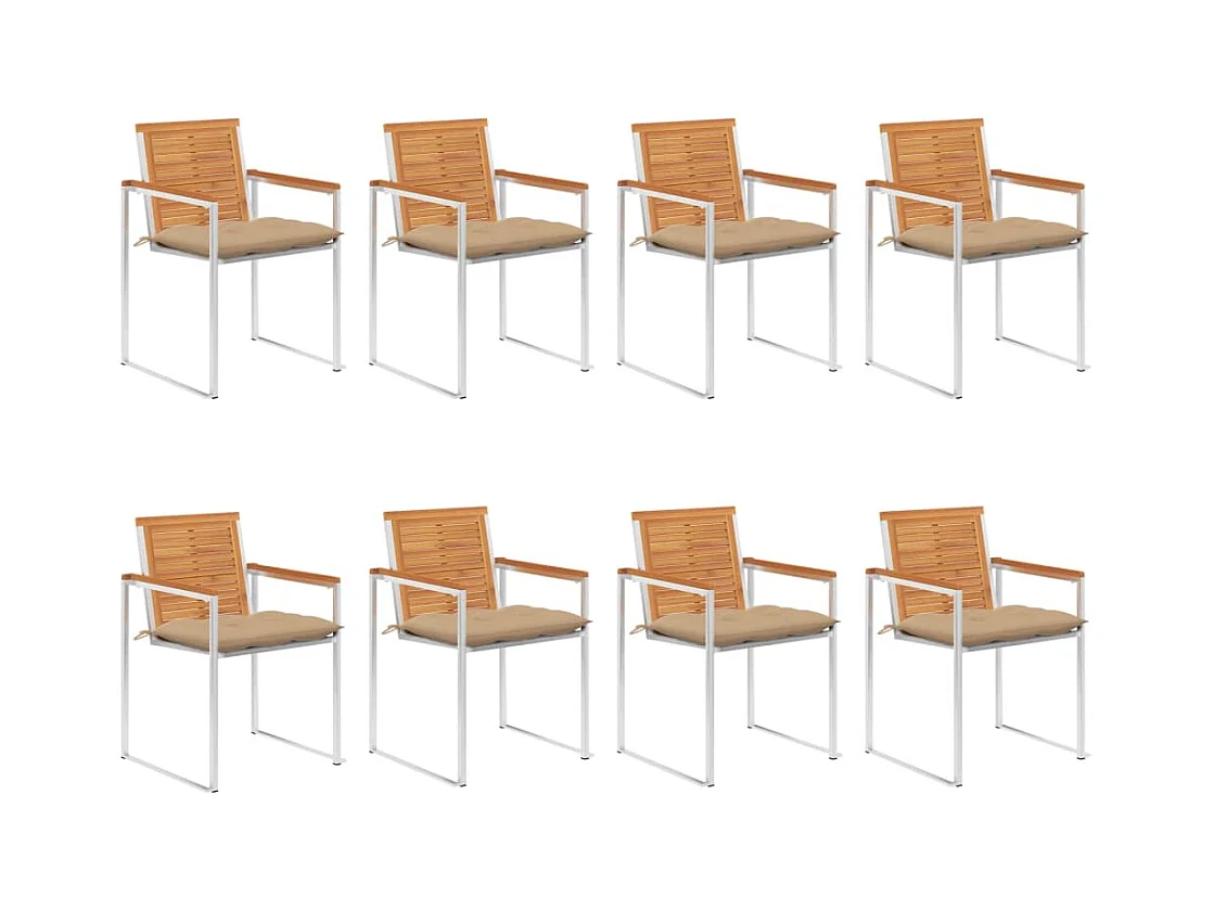 Chaises à dîner d'extérieur 8 pcs avec coussins Acacia massif