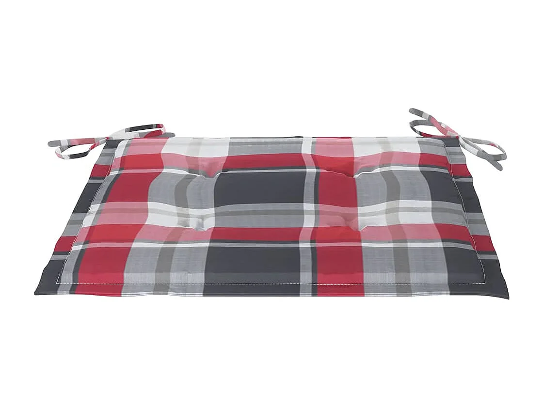 Chaises de jardin et coussins à carreaux gris 8 pièces Teck massif