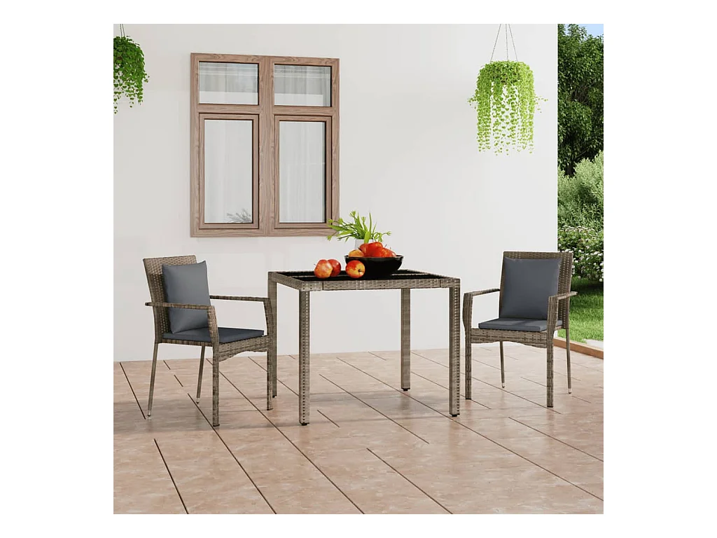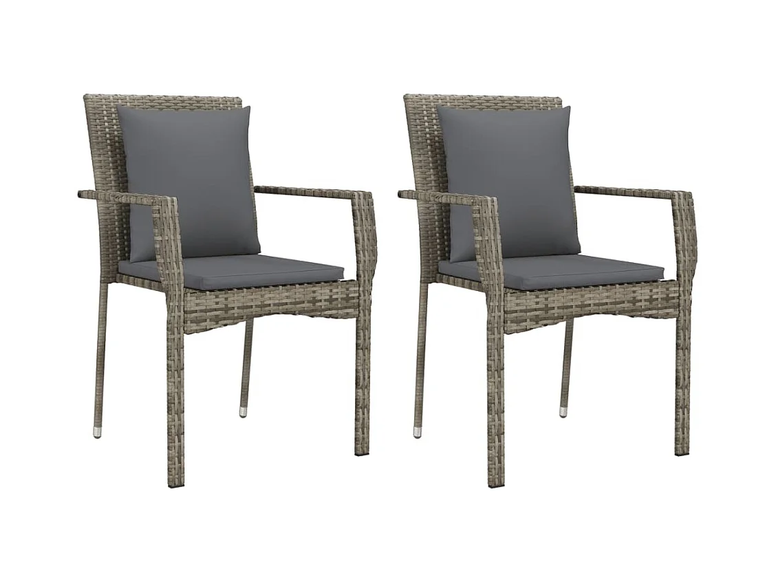 Chaises de jardin lot de 2 avec coussins gris résine tressée