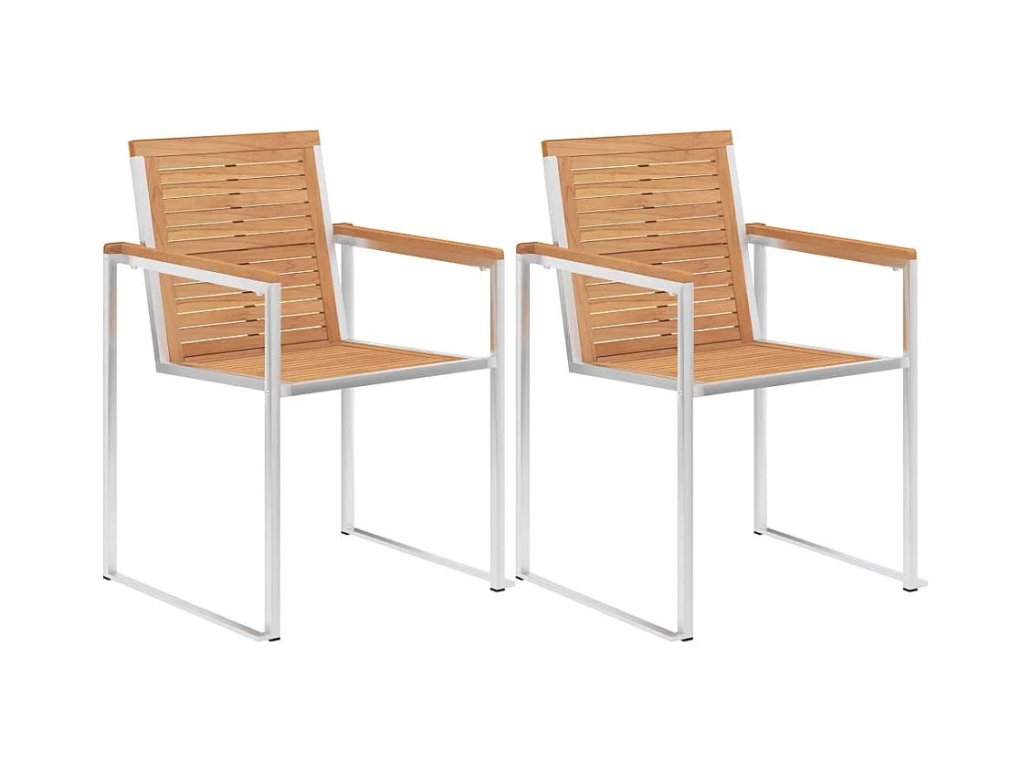 Chaises de jardin avec coussins 2 pièces Teck solide et acier