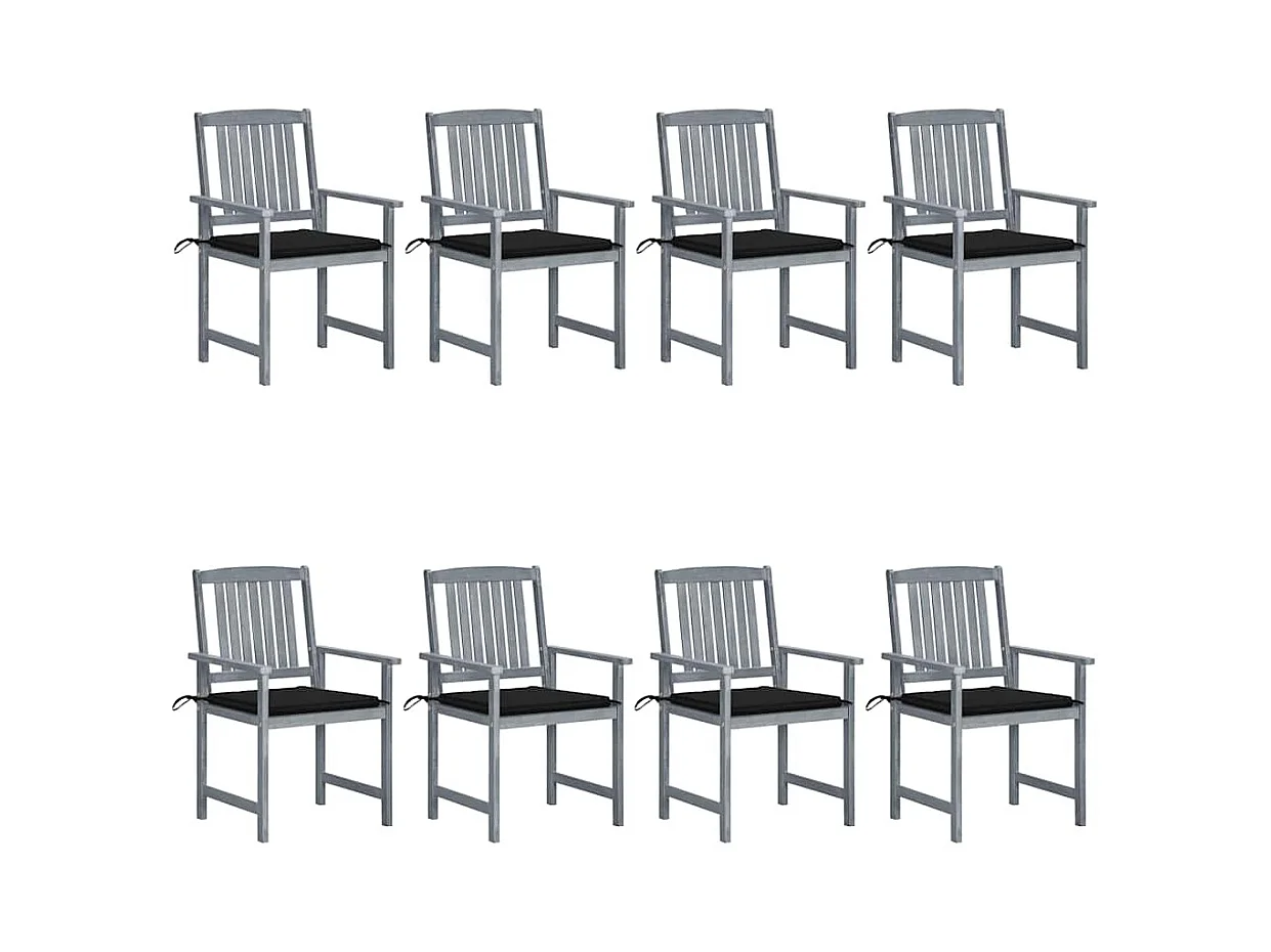 Chaises de jardin avec coussins 8 pièces Bois d'acacia solide Gris