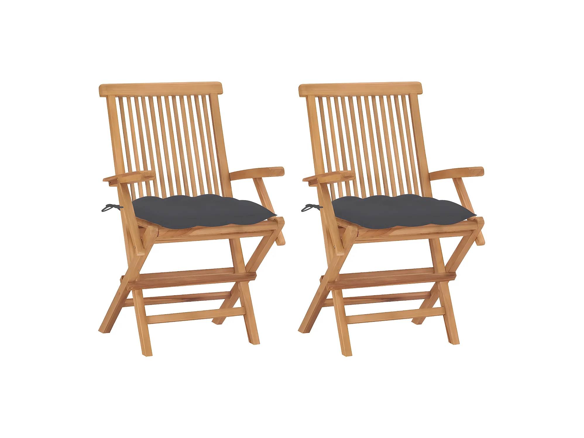 Chaises de jardin avec coussins anthracite 2 pcs Bois de teck SEF94793