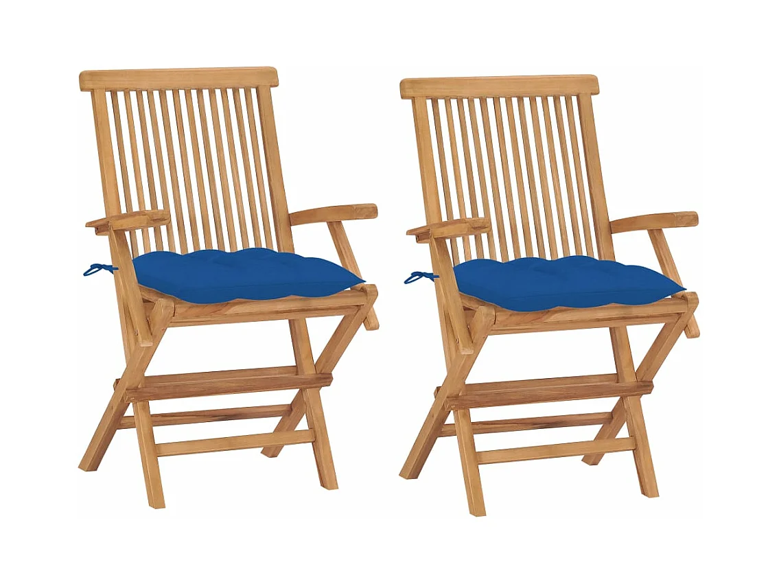 Chaises de jardin avec coussins bleu 2 pièces Bois de teck massif