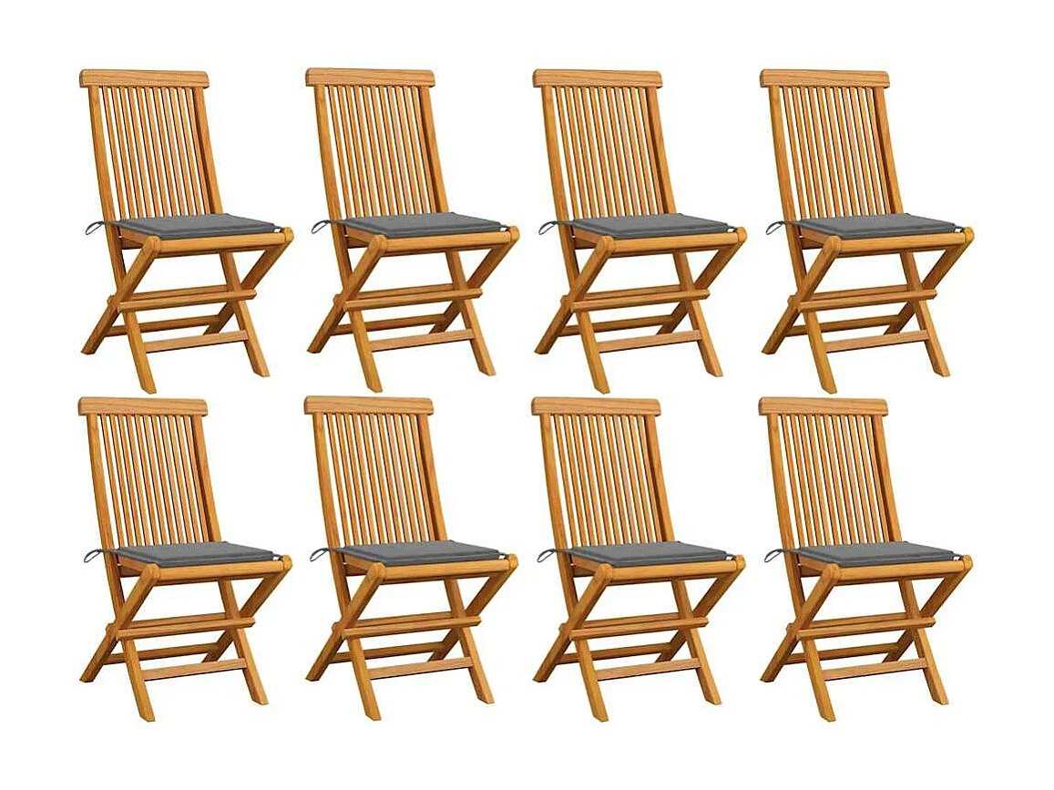 Chaises de jardin avec coussins gris 8 pièces Bois de teck massif