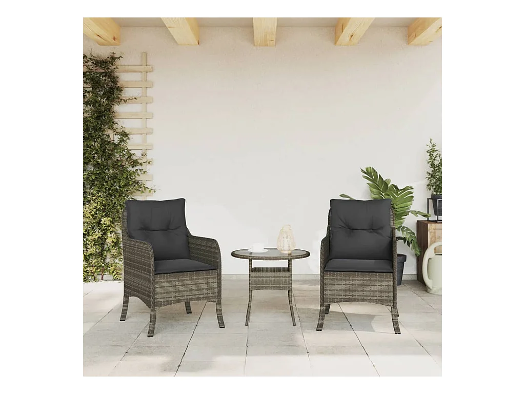 Chaises de jardin avec coussins lot de 2 gris résine tressée