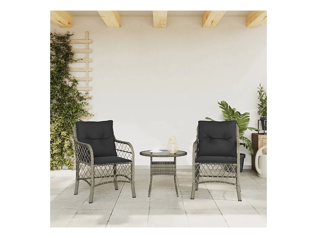 Chaises de jardin avec coussins lot de 2 gris résine tressée REO81578