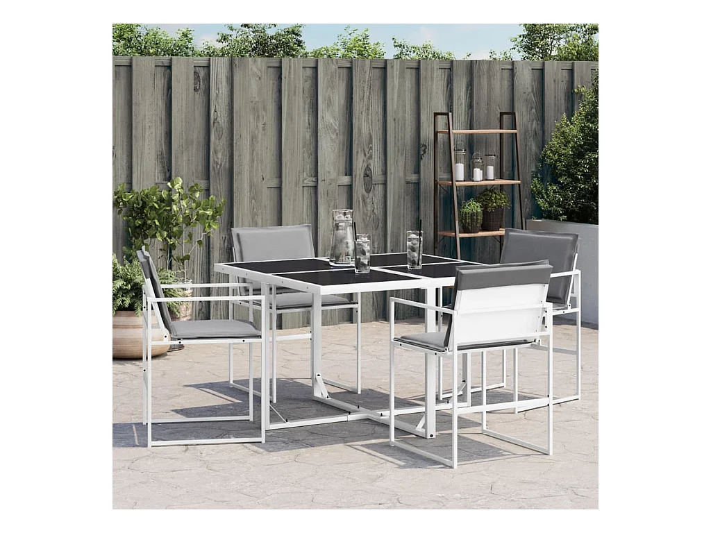 Chaises de jardin avec coussins lot de 4 blanc acier/textilène
