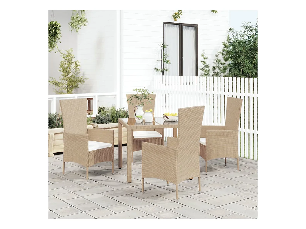 Chaises de jardin avec coussins lot de 4 Résine tressée Beige