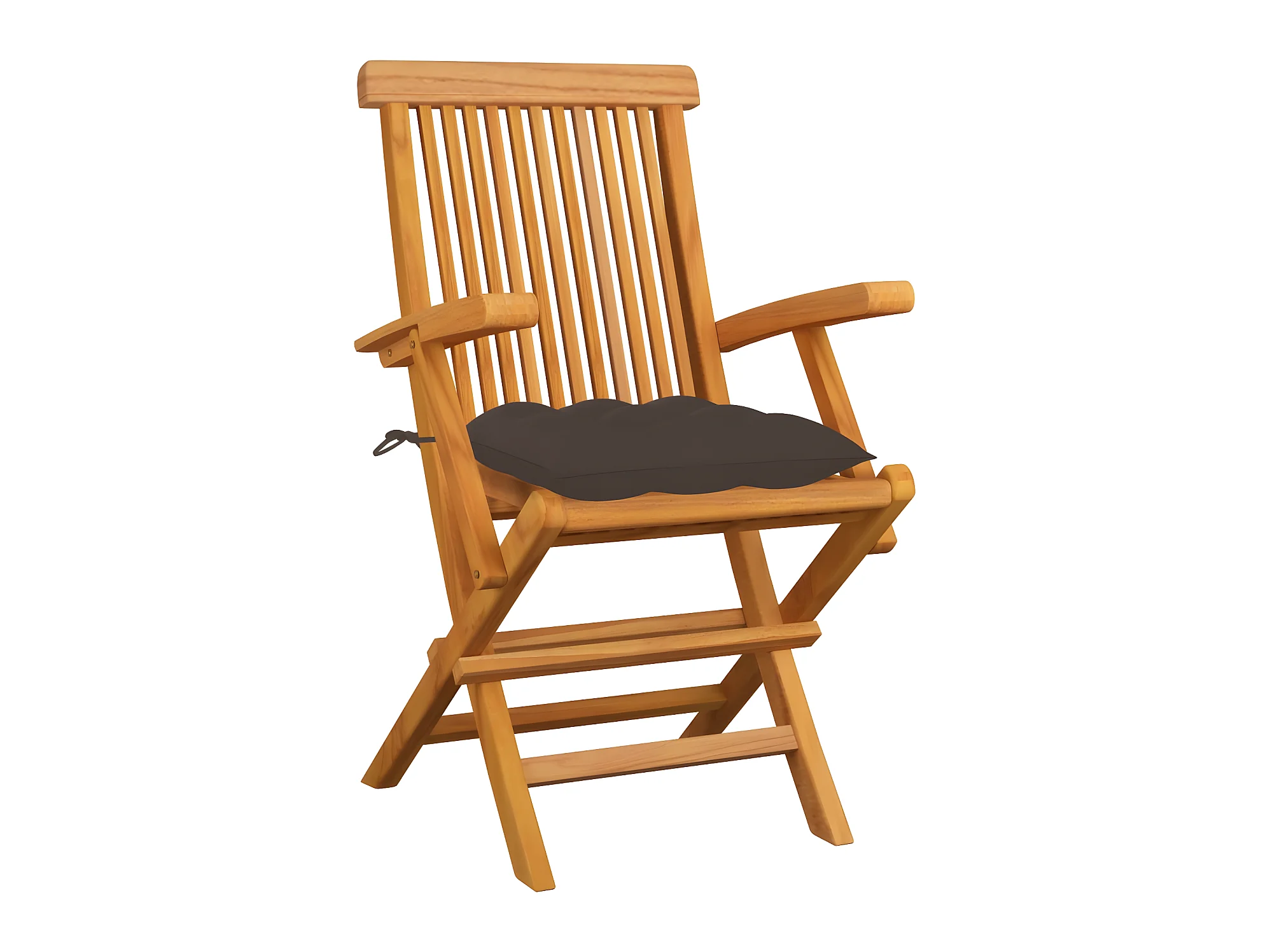 Lot de 3 Chaises de jardin avec coussins taupe Bois de teck massif FR31774