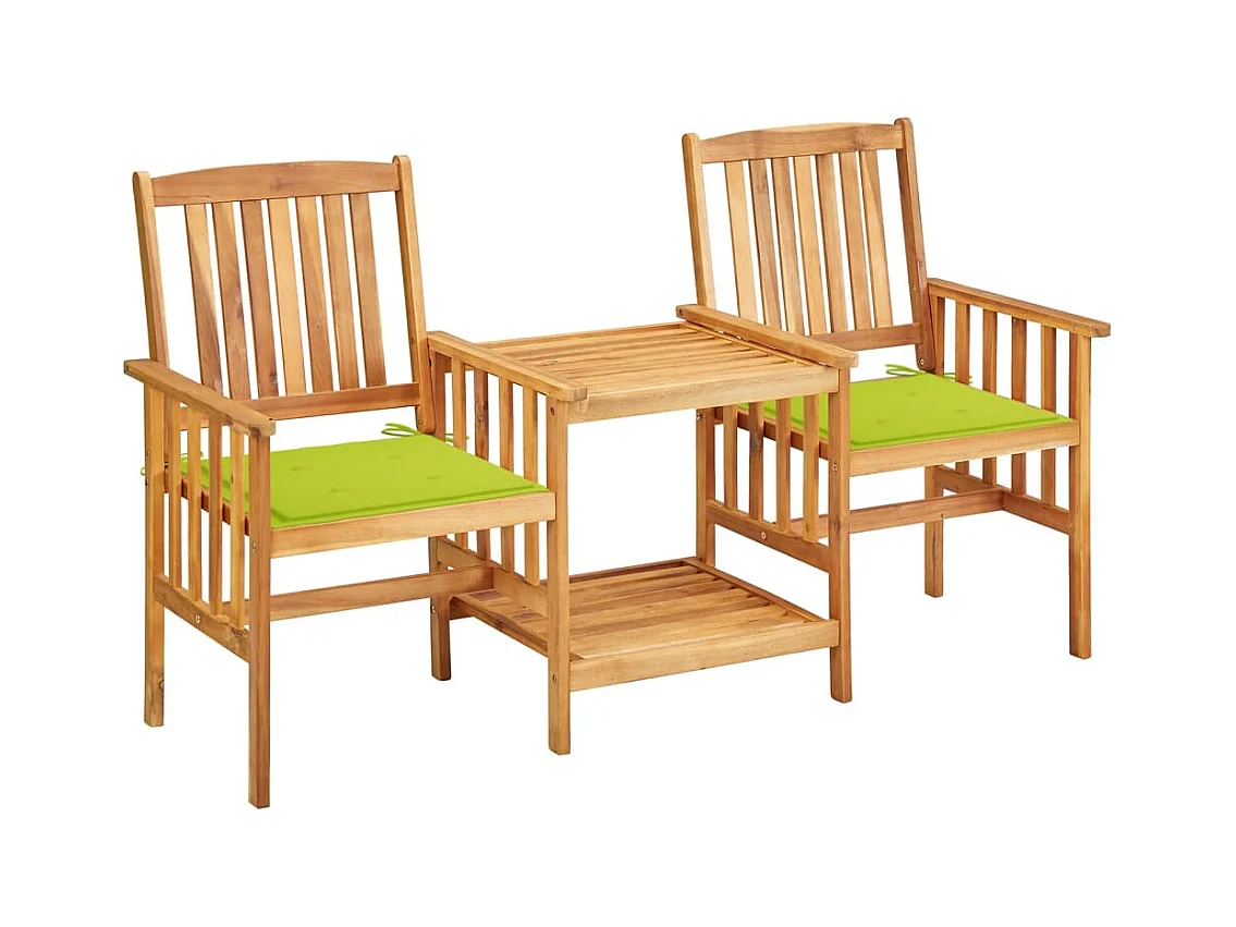 Chaises de jardin avec table à thé et coussins Acacia solide FR46819