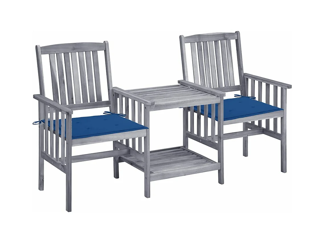 Chaises de jardin avec table à thé et coussins Acacia solide FR14293