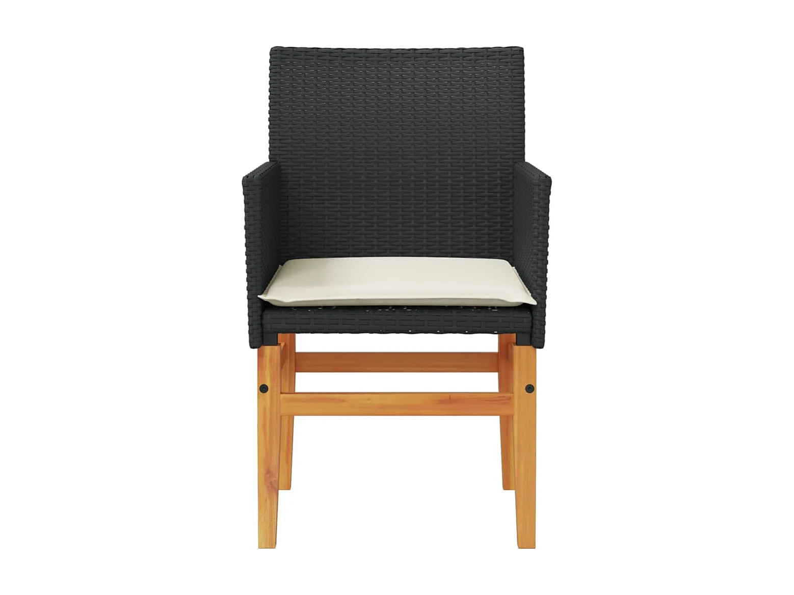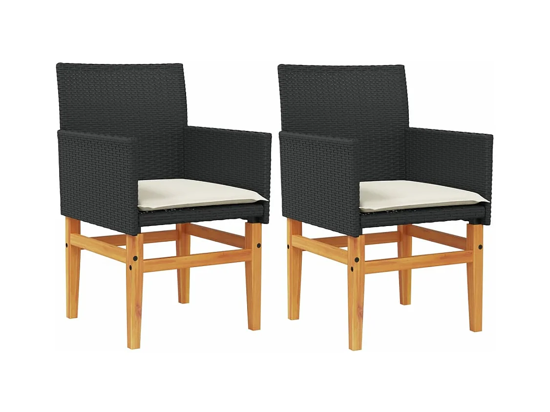 Chaises de jardin coussins lot de 2 noir résine tressée et bois