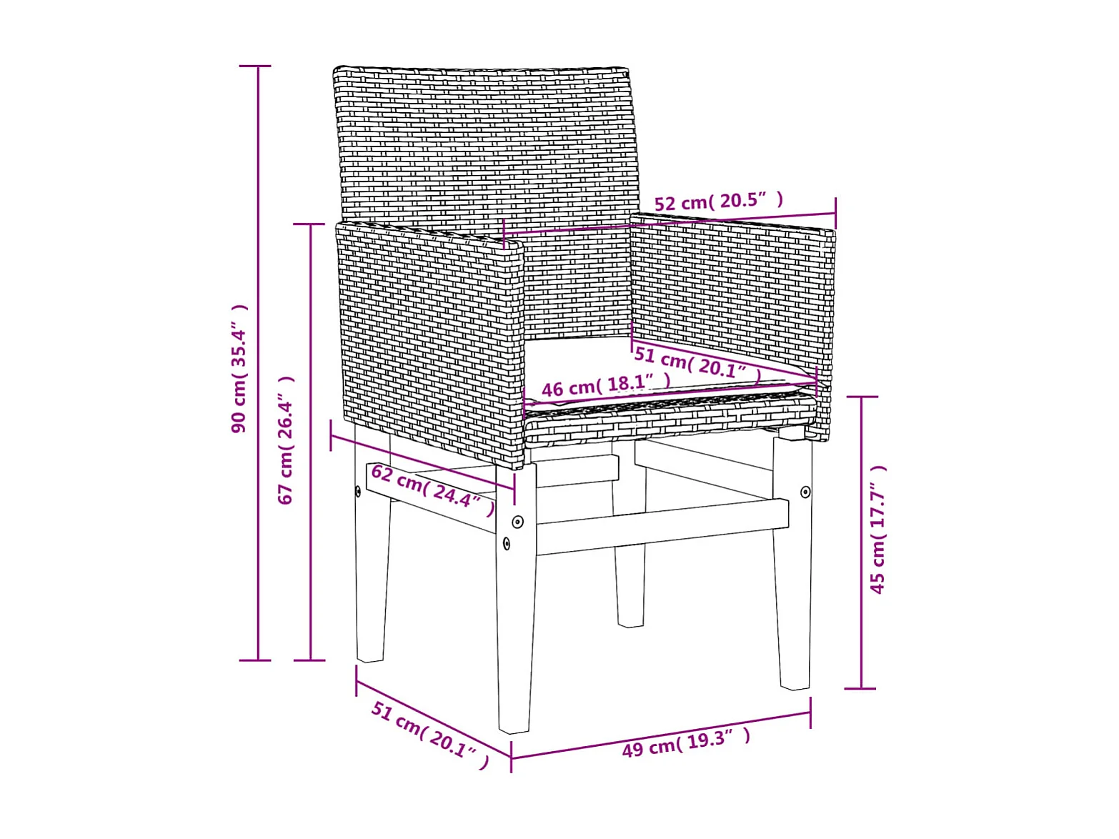 Chaises de jardin avec coussins lot de 2 noir 54x61x83 cm rotin