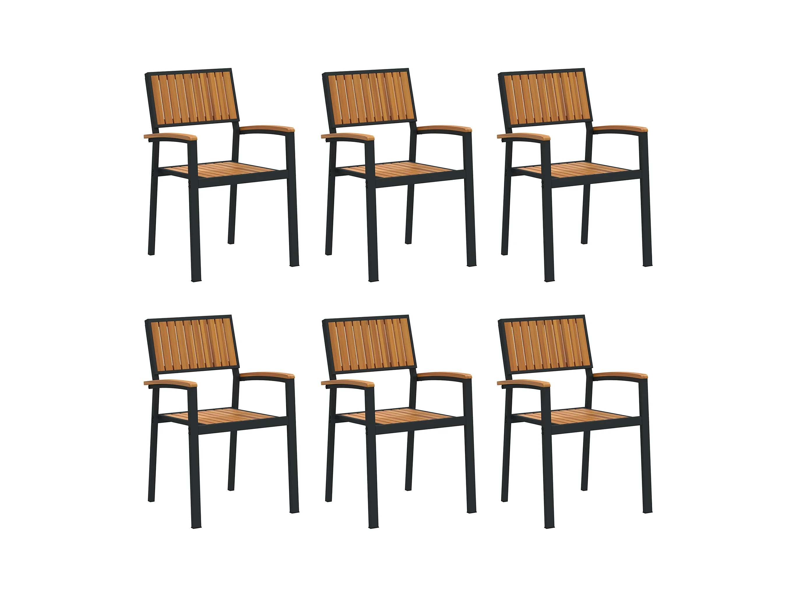 Chaises de jardin empilables 6 pcs en acier noir et acacia