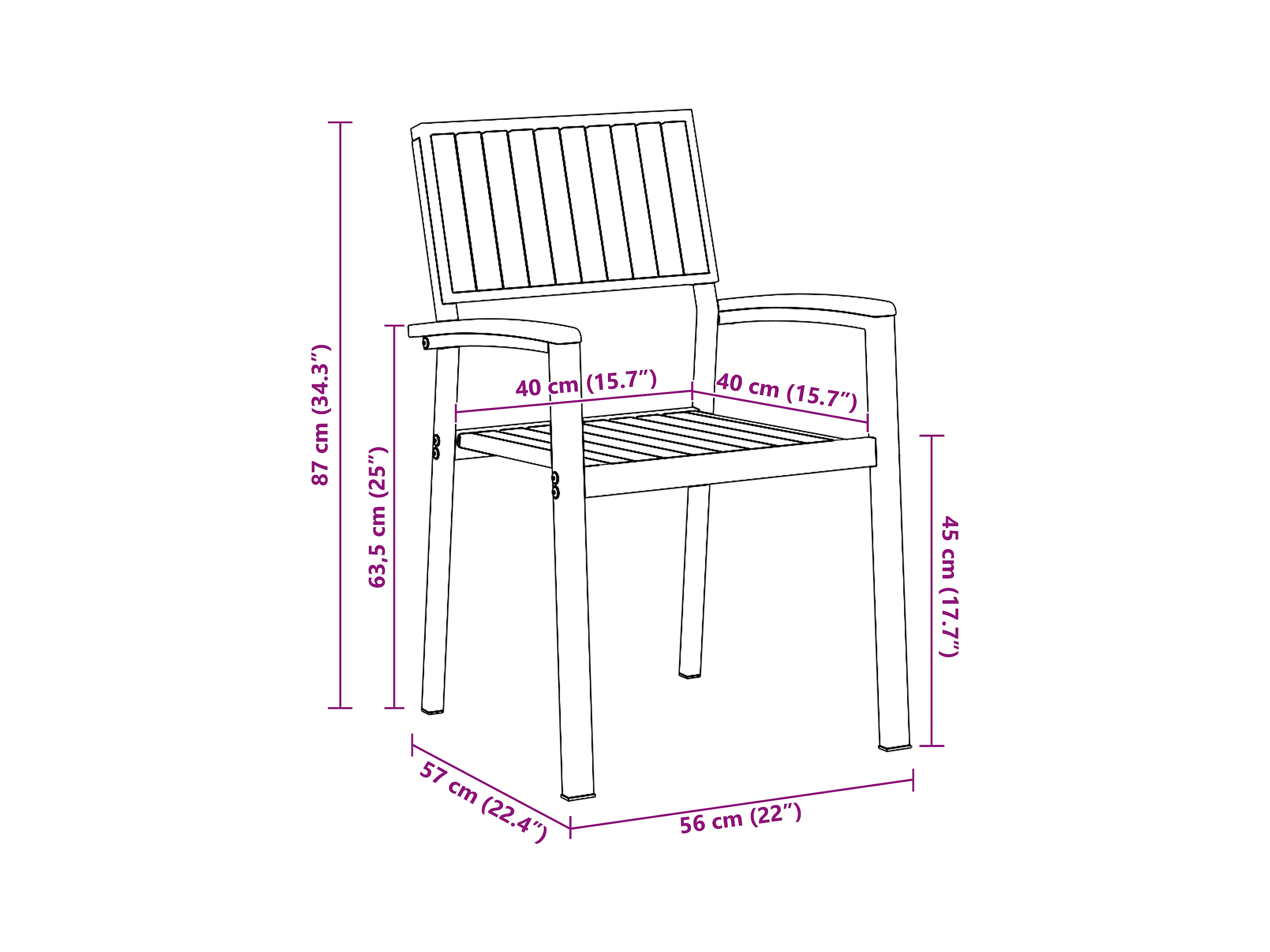 Chaises de jardin empilables 8 pcs acier noir et bois d'acacia massif