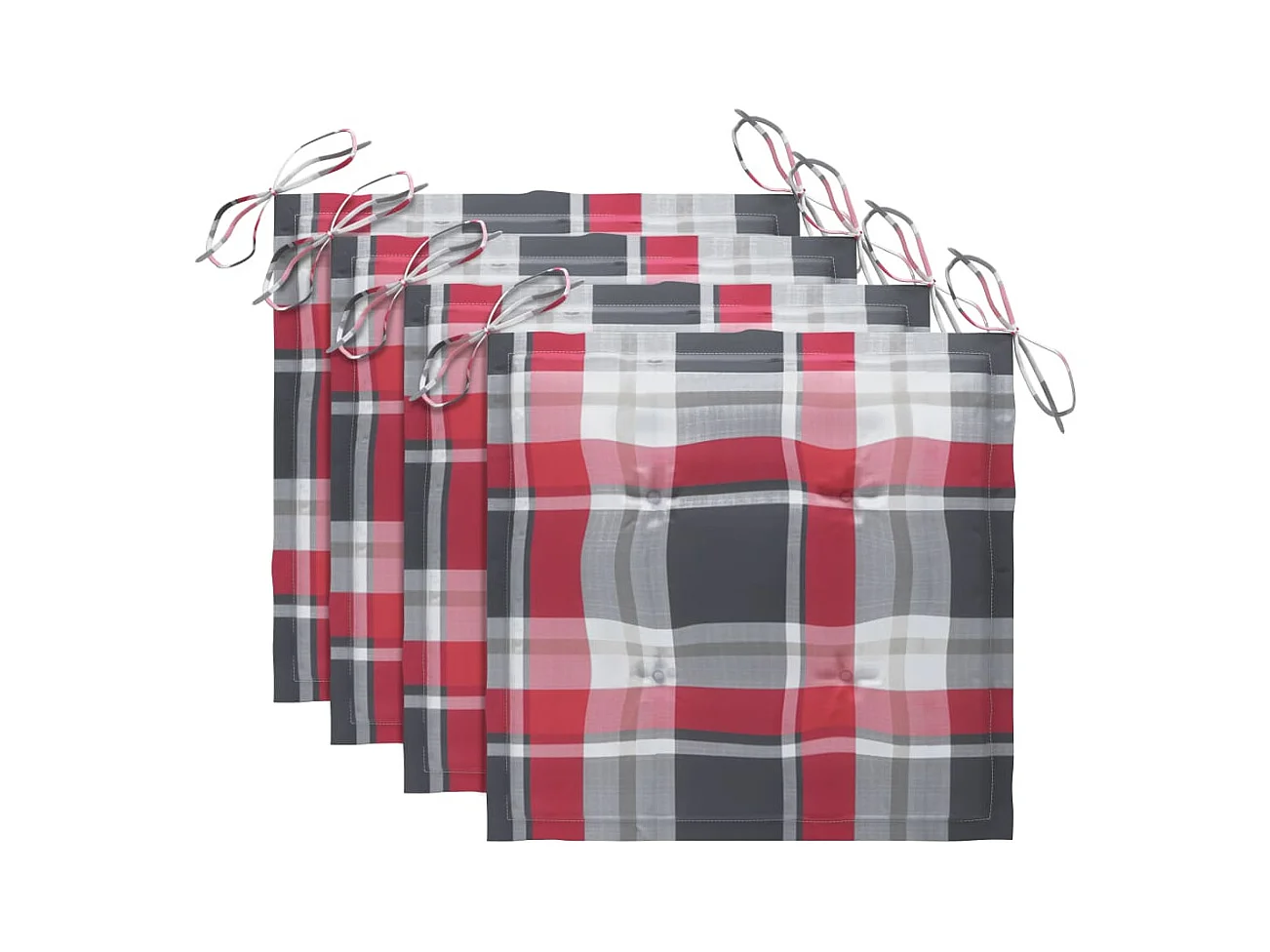 Chaises de jardin et coussins à carreaux rouge 4 pièces Teck massif