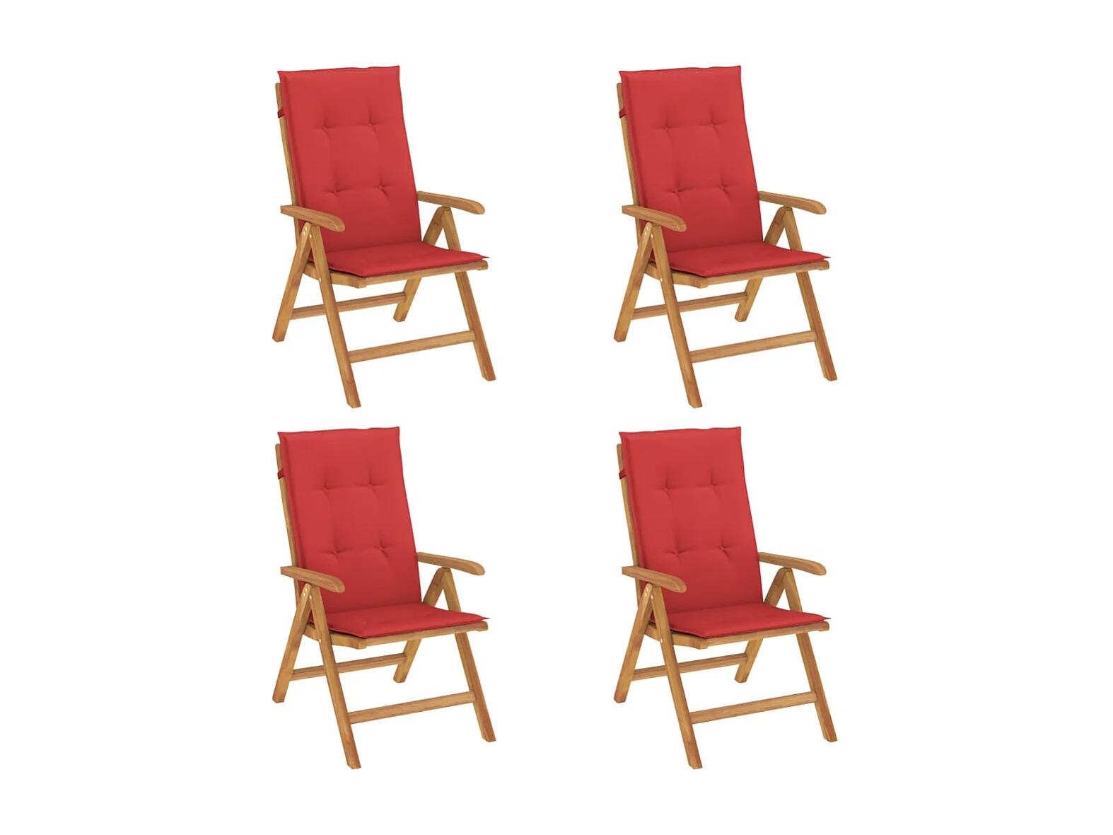 Chaises de jardin inclinables lot de 4 et coussins bois teck