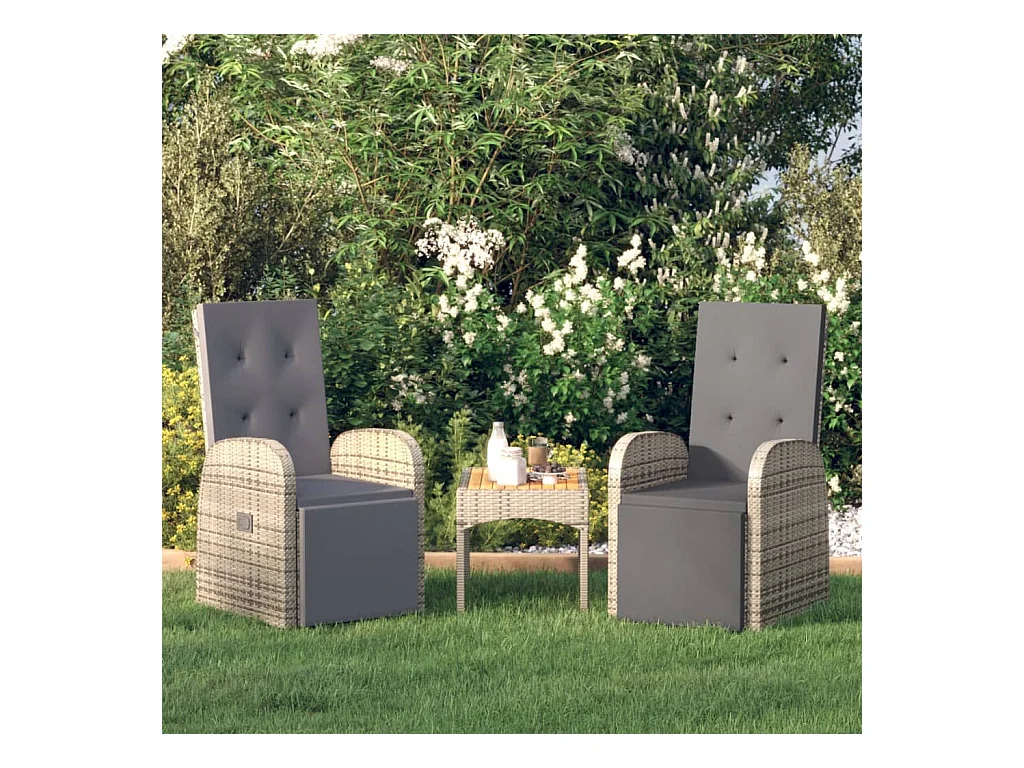 Chaises inclinables de jardin 2 pièces et table gris résine tressée