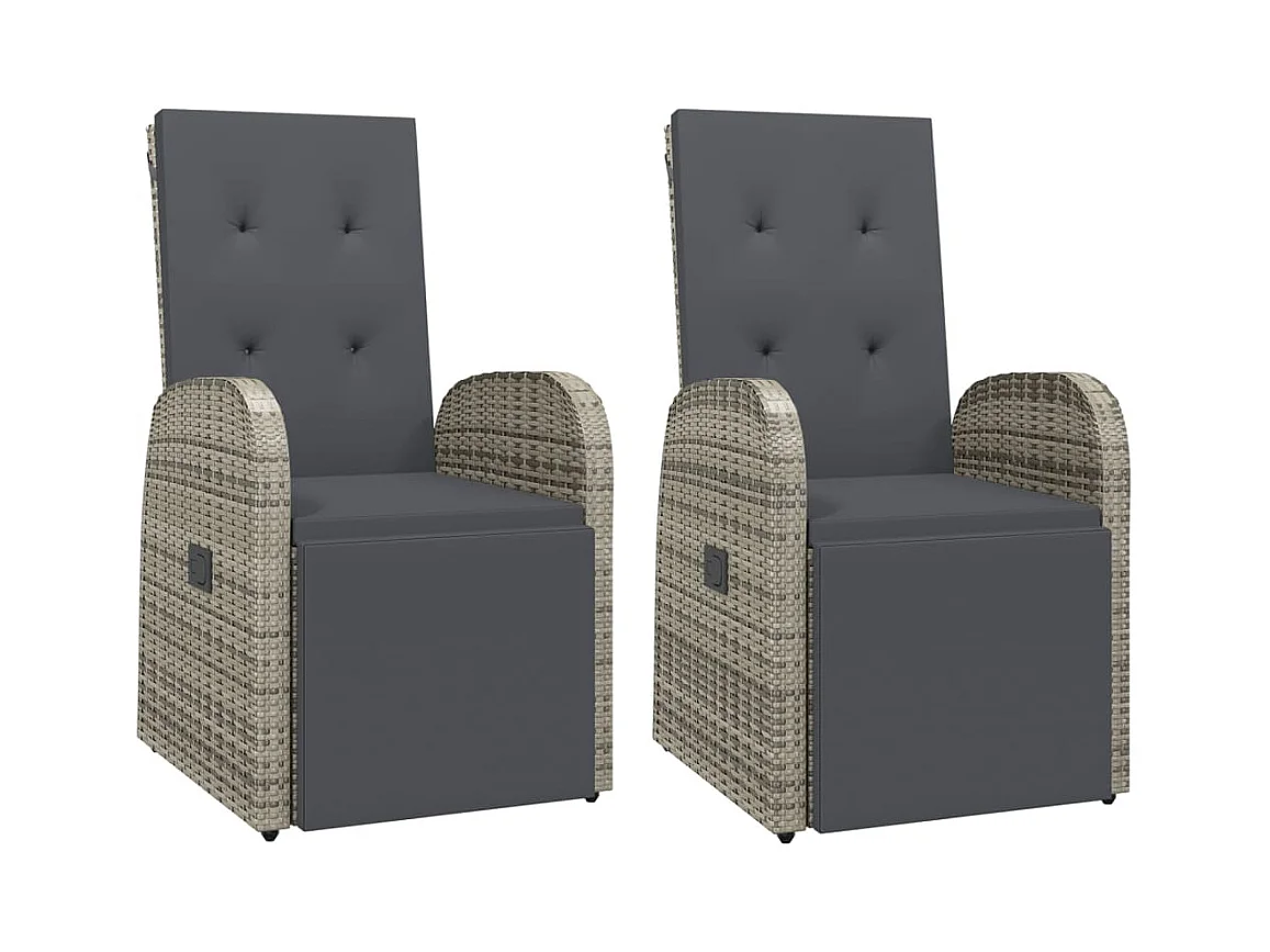Chaises de jardin inclinables coussins 2 pièces Gris Résine tressée