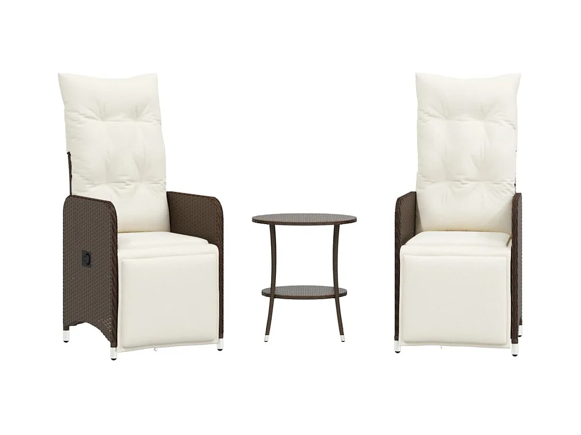 Chaises inclinables de jardin lot de 2 et coussins marron rotin