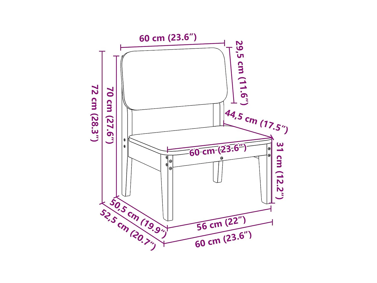 Chaises de jardin lot de 2 60x52,5x72 cm bois massif de pin
