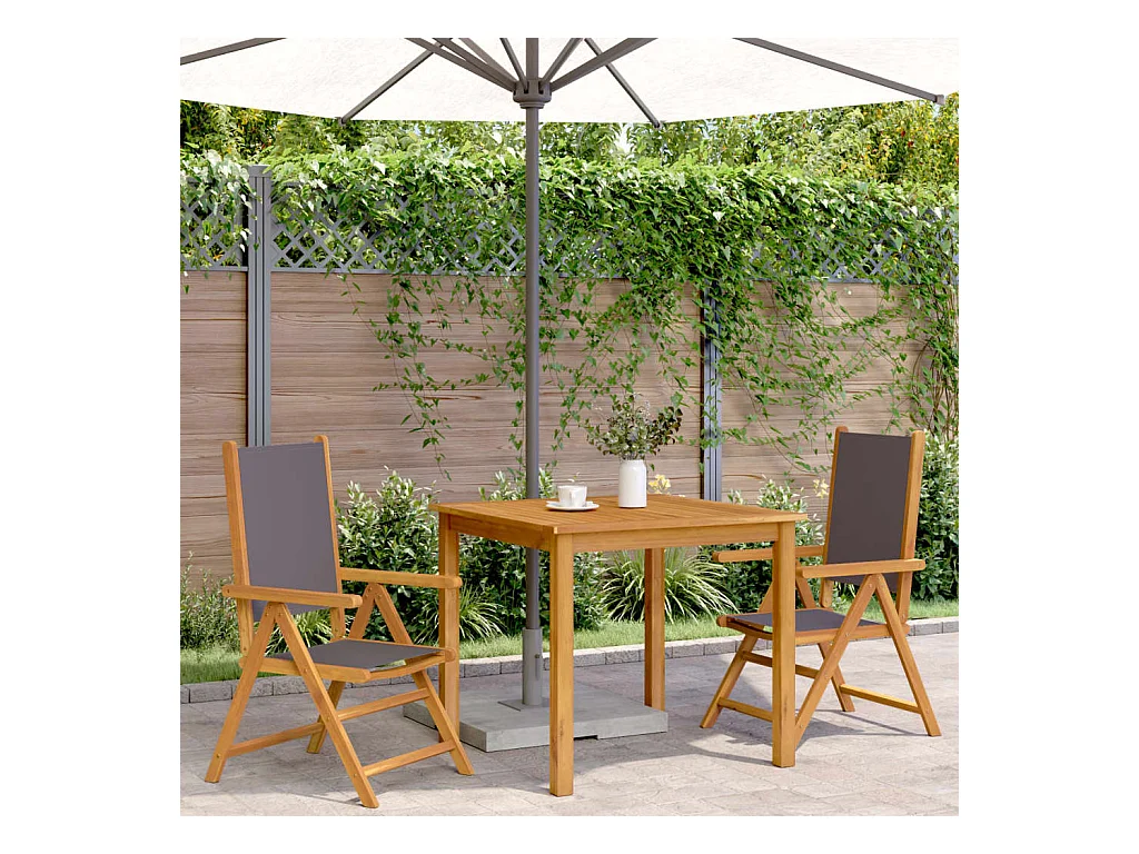 Chaises de jardin lot de 2 anthracite bois acacia massif tissu
