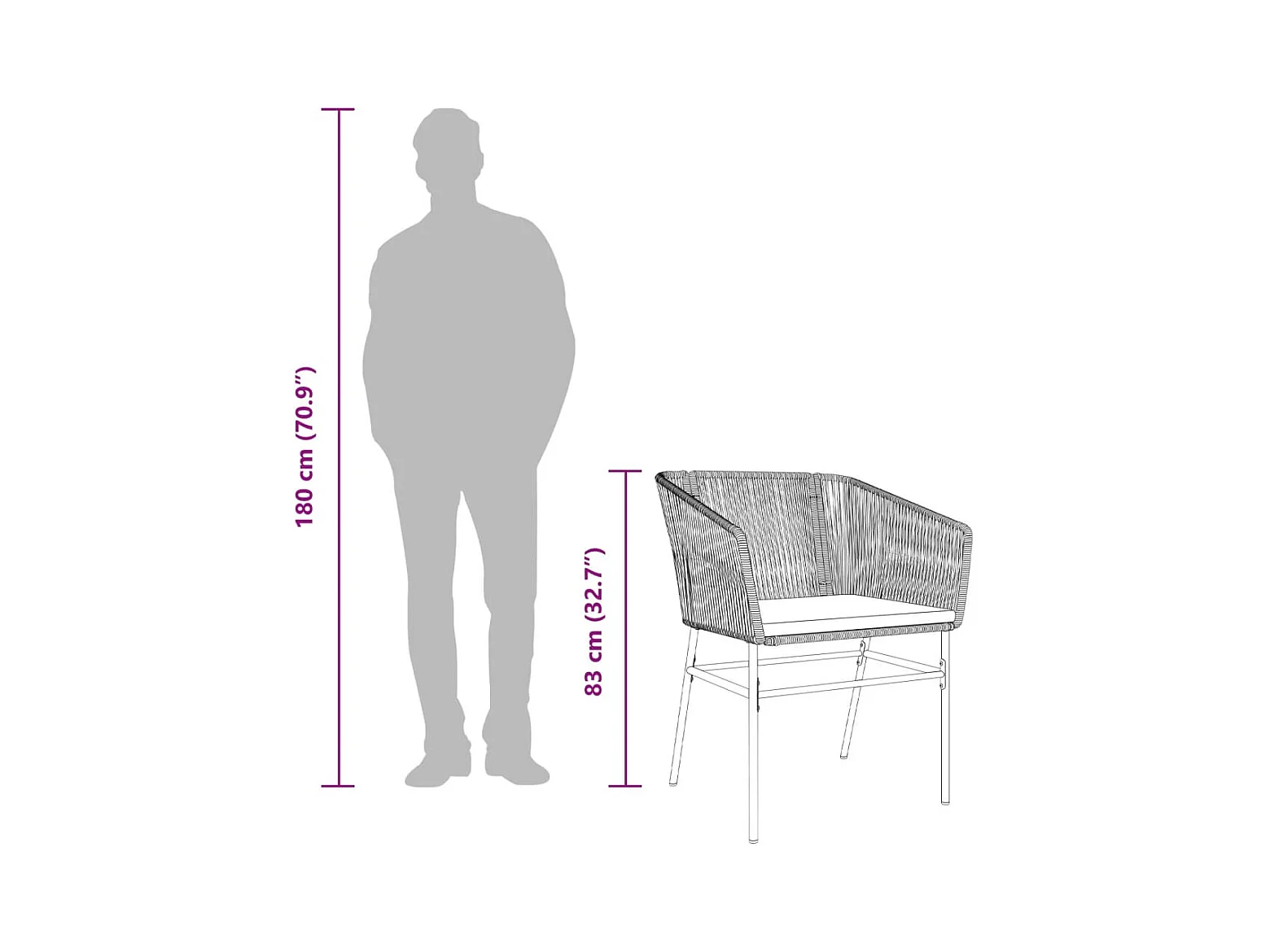 Chaises de jardin lot de 2 avec coussins gris résine tressée