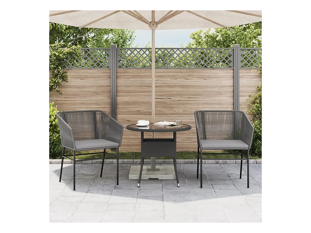 Chaises de jardin lot de 2 avec coussins gris résine tressée