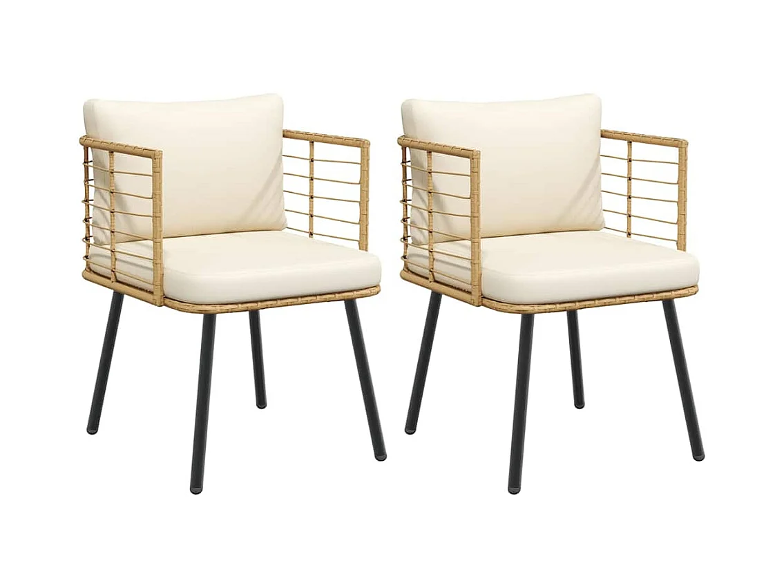 Chaises de jardin lot de 2 avec coussins naturel résine tressée