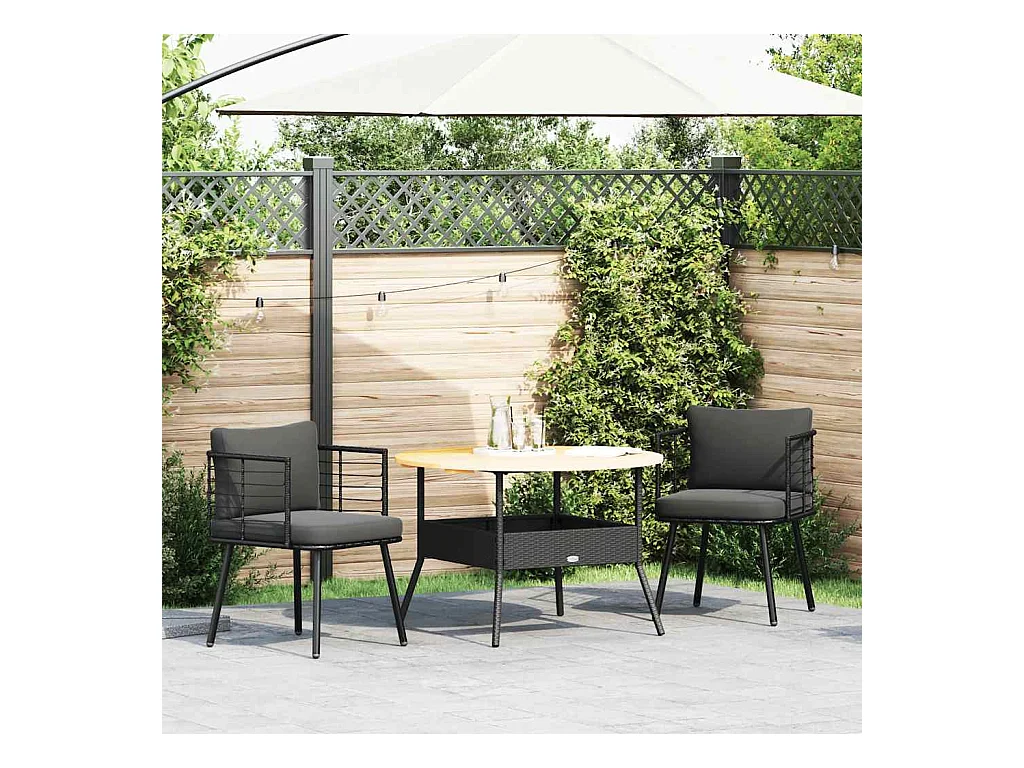 Chaises de jardin coussins lot de 2 noir résine tressée acacia