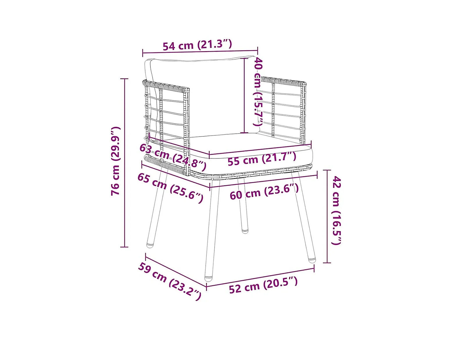 Chaises de jardin lot de 2 avec coussins Résine tressée Noir