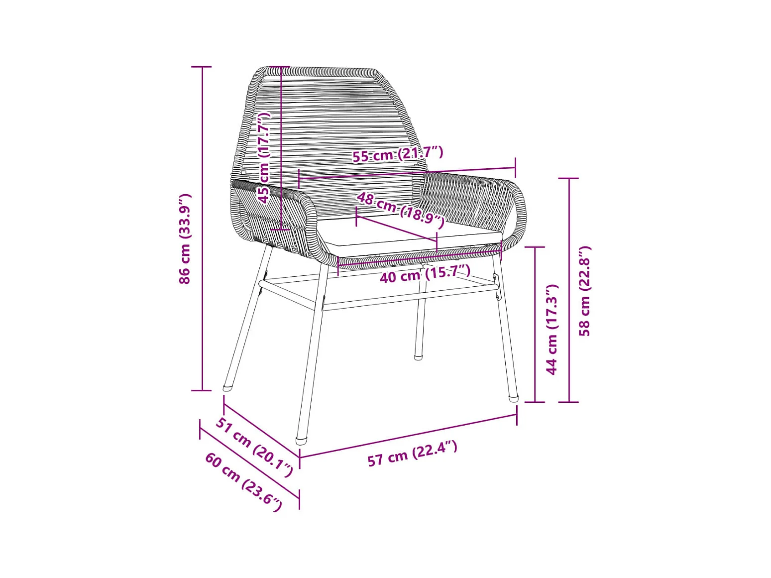 Chaises de jardin lot de 2 avec coussins noir résine tressée