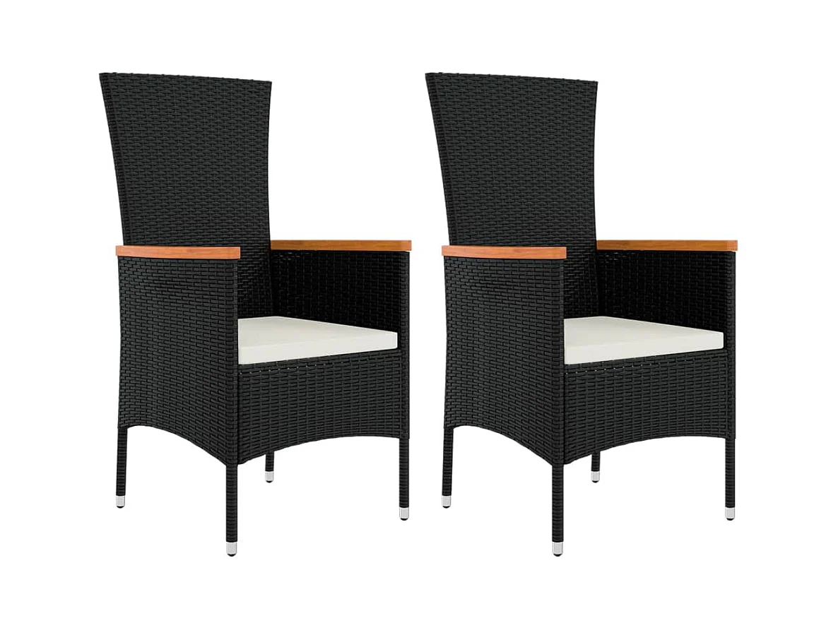 Chaises de jardin coussins lot de 2 noir résine tressée acacia