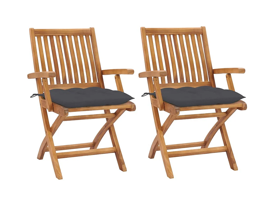 Chaises de jardin lot de 2 et coussins anthracite Bois de teck