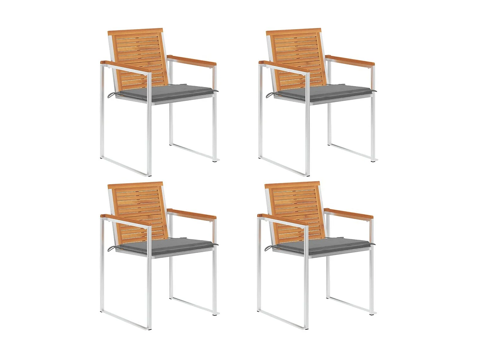 Chaises de jardin lot de 4 avec coussins Bois d'acacia massif