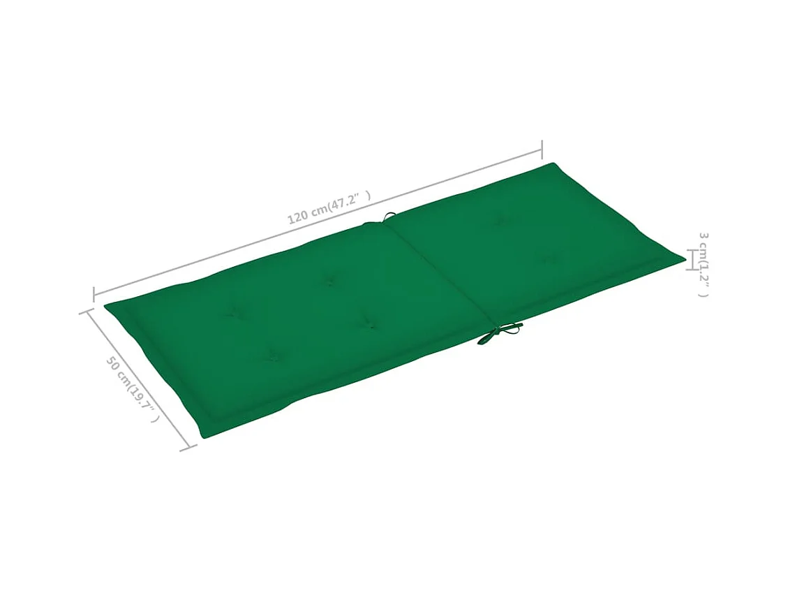 Chaises de jardin lot de 2 et coussins vert Bois de teck massif