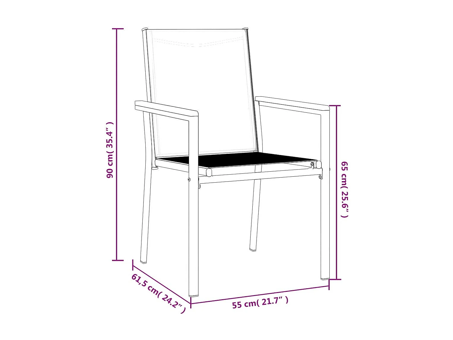 Chaises de jardin lot de 4 noir 55x61,5x90cm textilène et acier