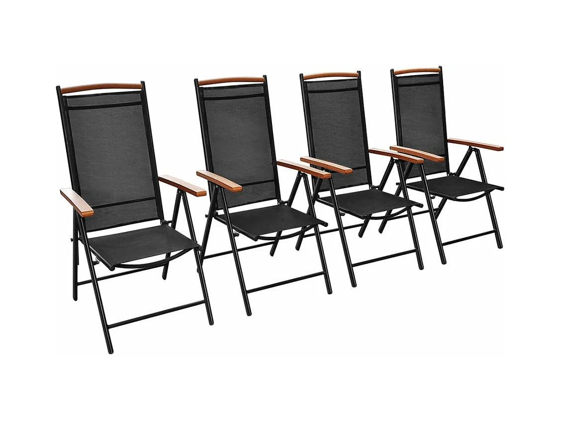 Chaises de jardin pliables lot de 4 aluminium et textilène noir