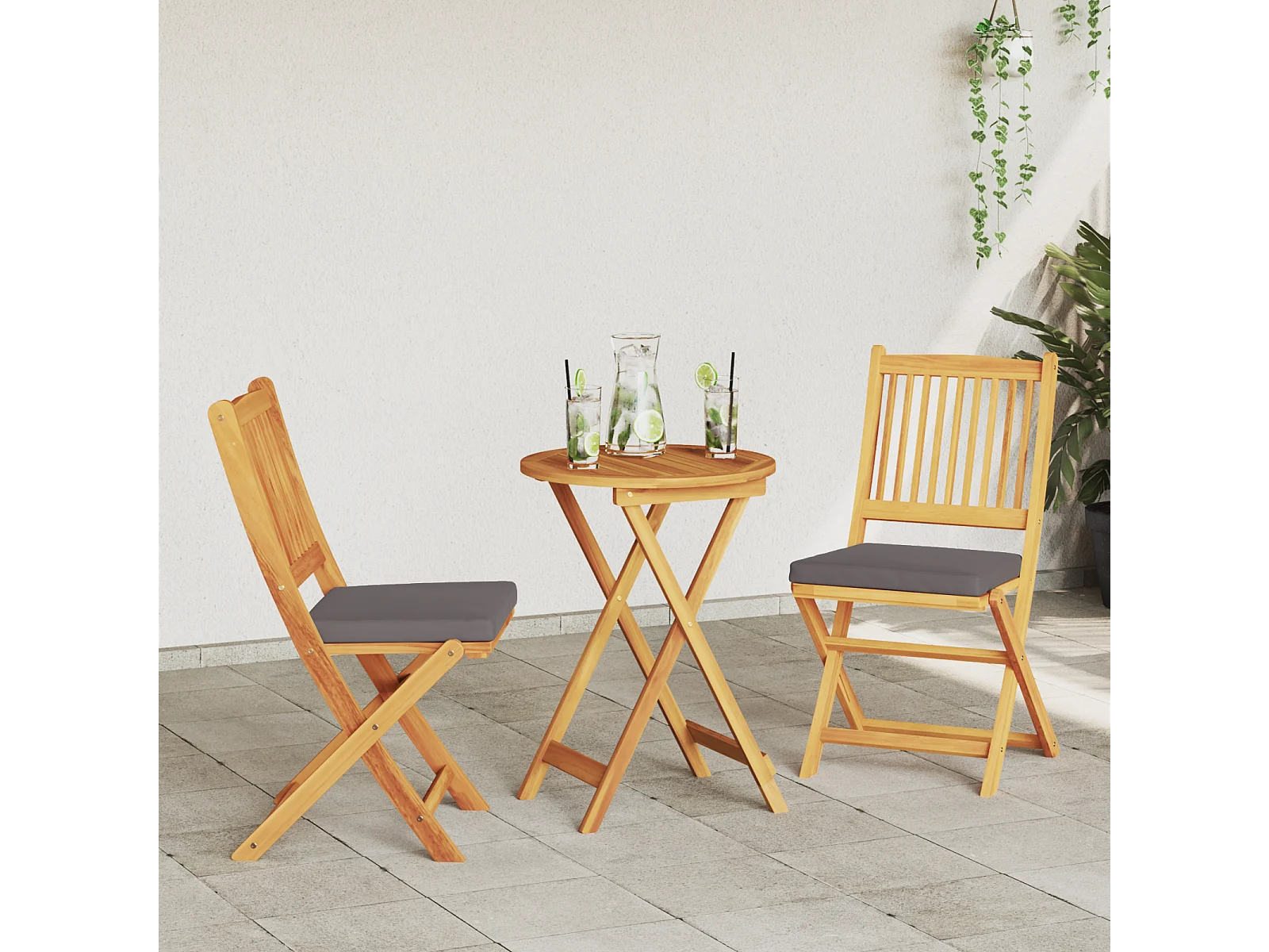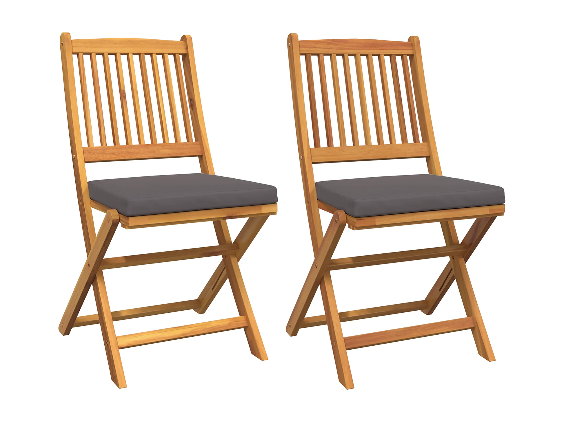 Chaises de jardin pliantes avec coussin gris 2pcs en bois d'acacia massif
